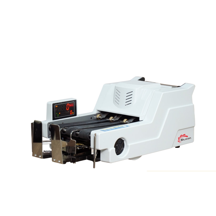 - Máy đếm tiền Silicon MC 8800 có thiết kế với thân máy dài. Được sơn tĩnh điện màu trắng độ bền cao. Kích thước của máy là 56 cm (dài) x 31 cm (rộng) x 24 cm (cao). Nặng tổng cộng 8.3 kg. Với tốc độ đếm lên đến 1000 tờ/phút. Máy này được sử dụng phổ biến trong ngân hàng và kho bạc nơi yêu cầu độ chính xác và tốc độ cao.